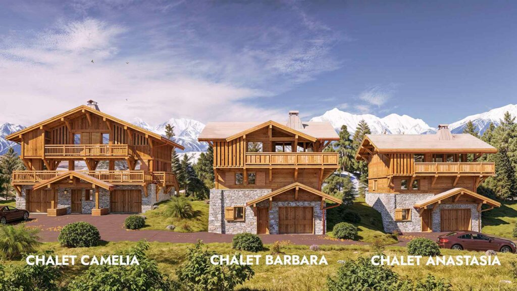 The Anastasia chalet is ideally sized for family life. Open-plan living spaces for harmonious circulation, a cathedral-style living room on the top floor opening onto a covered terrace, three functional bedrooms, one of which has an en-suite bathroom, all complemented by a garage and a ski room. The emphasis is on comfort and the choice of quality materials.
