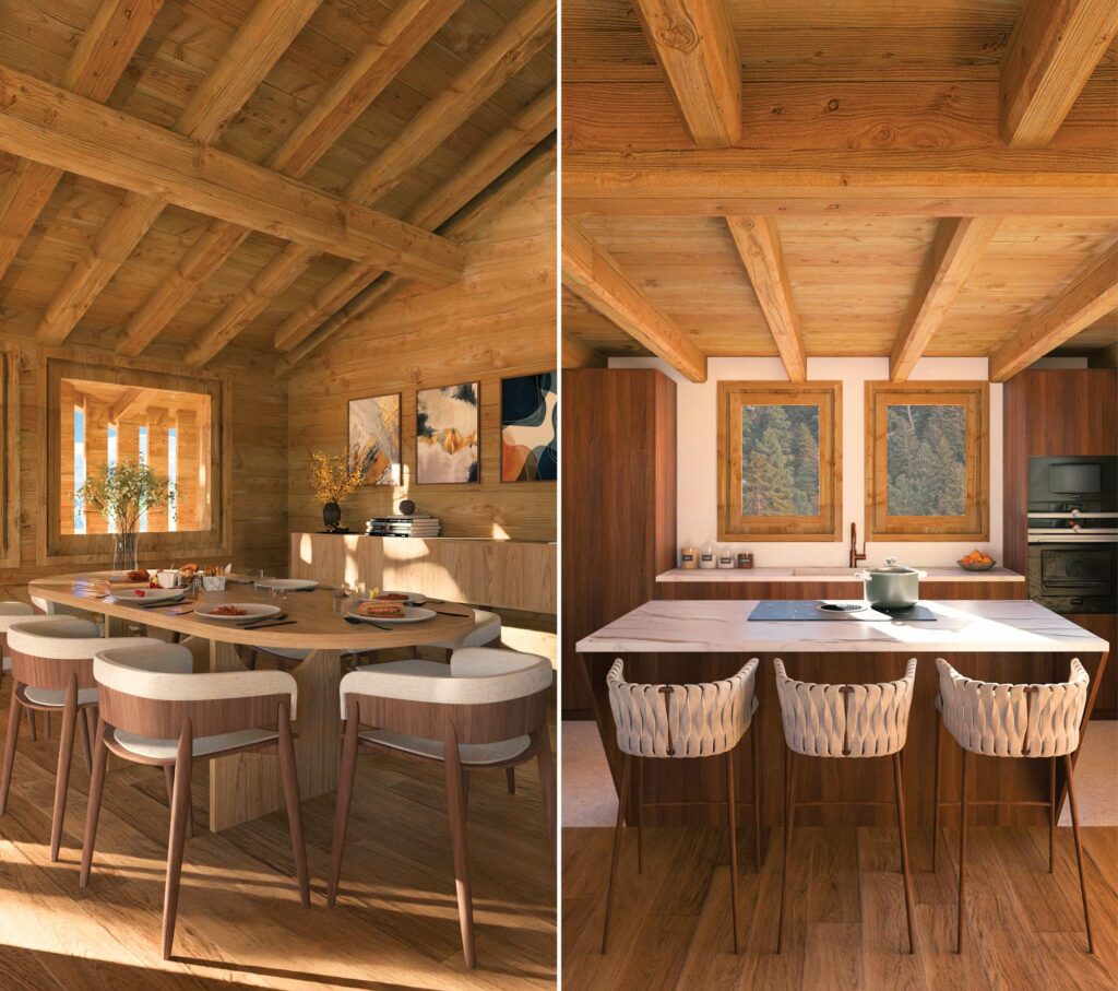This chalet, built from spruce and local stone, offers sophisticated architecture and meticulous finishes for an authentic and opulent aesthetic. All this on a flat plot of 430 m².